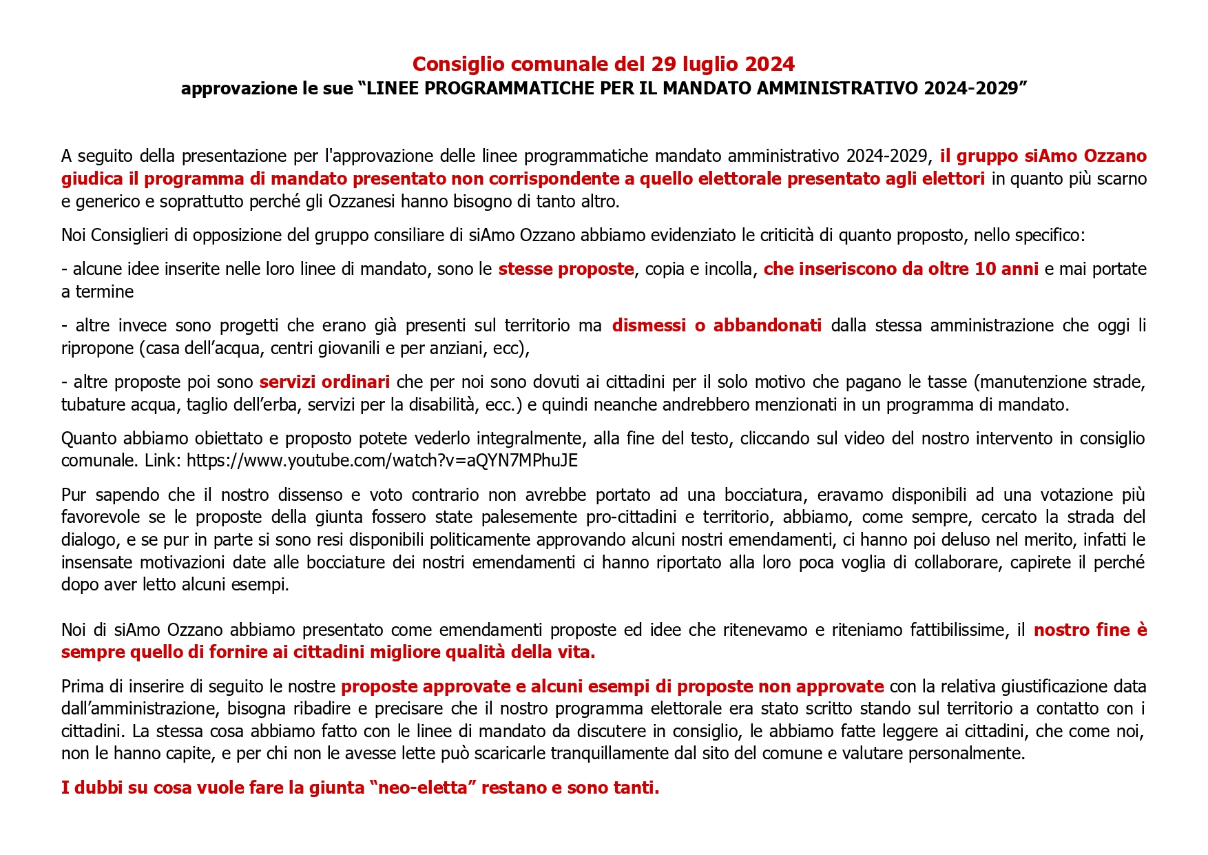 GUARDA IL VIDEO COMPLETO DEL CONSIGLIO COMUNALE CLICCA QUI